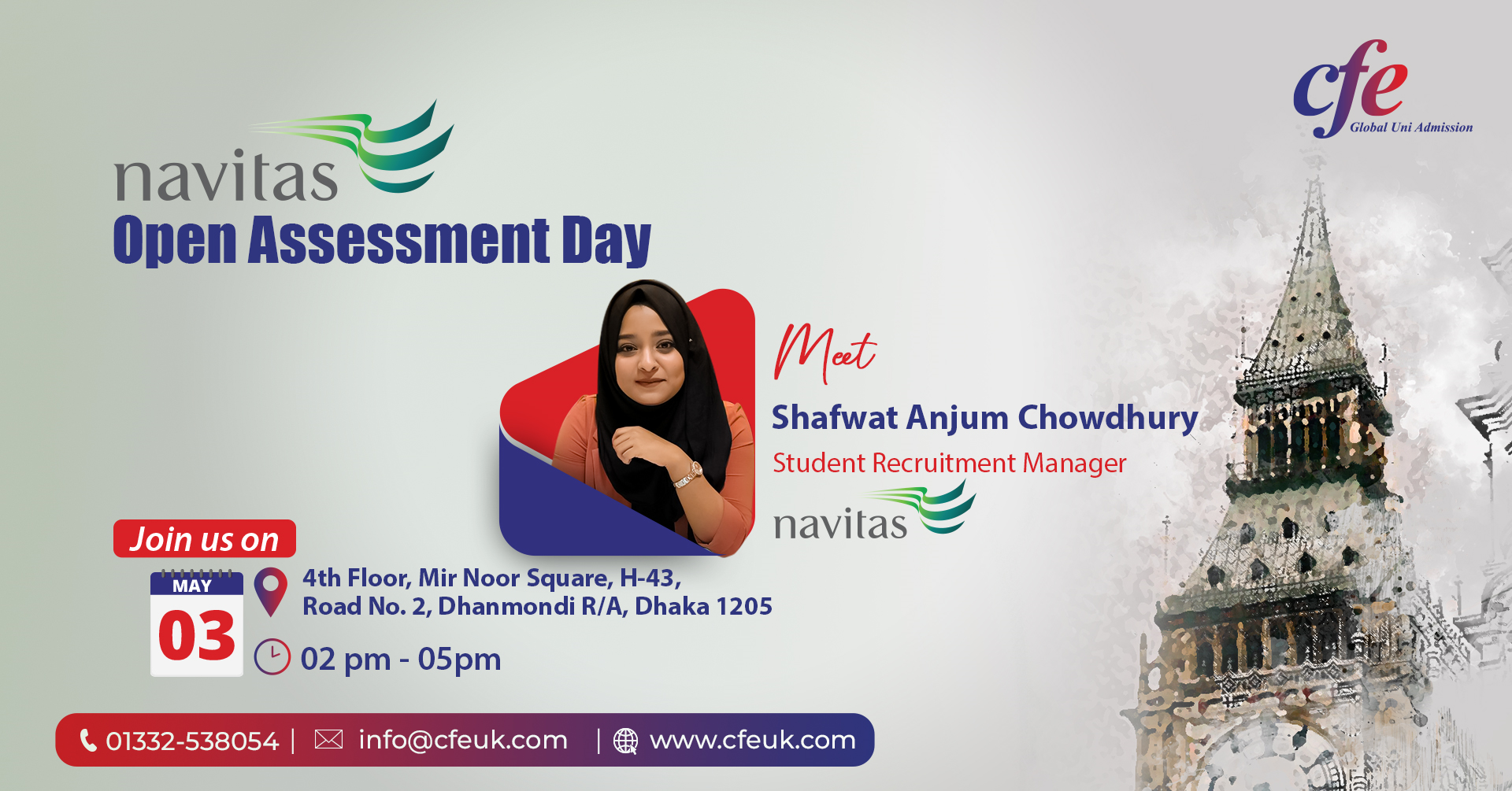 Join us at the Navitas Open Assessment Day in Dhaka and take the first step toward your international education journey with expert guidance and on-spot assessment opportunities.