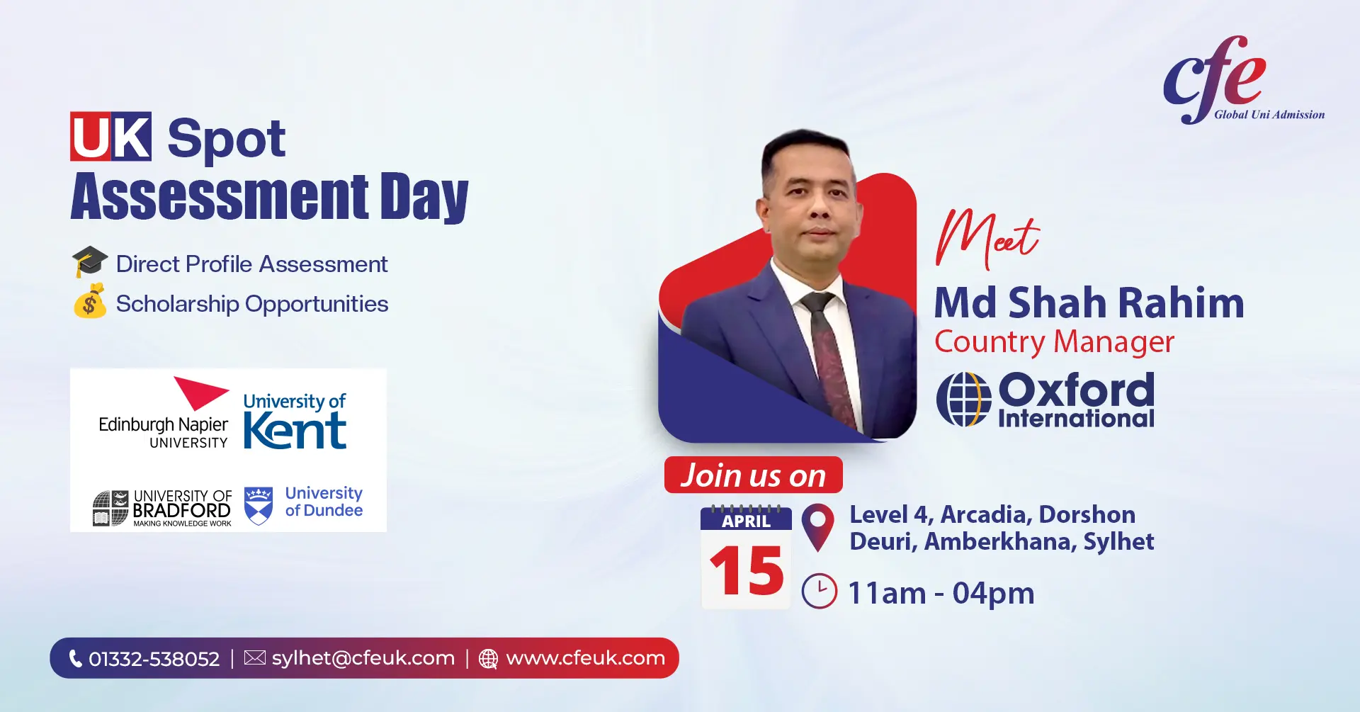 Centre for Education (CFE) is proud to host an exclusive Spot Assessment Day in collaboration with Oxford International Education Group (OIEG), a globally recognised education provider with a strong presence in the UK and worldwide.